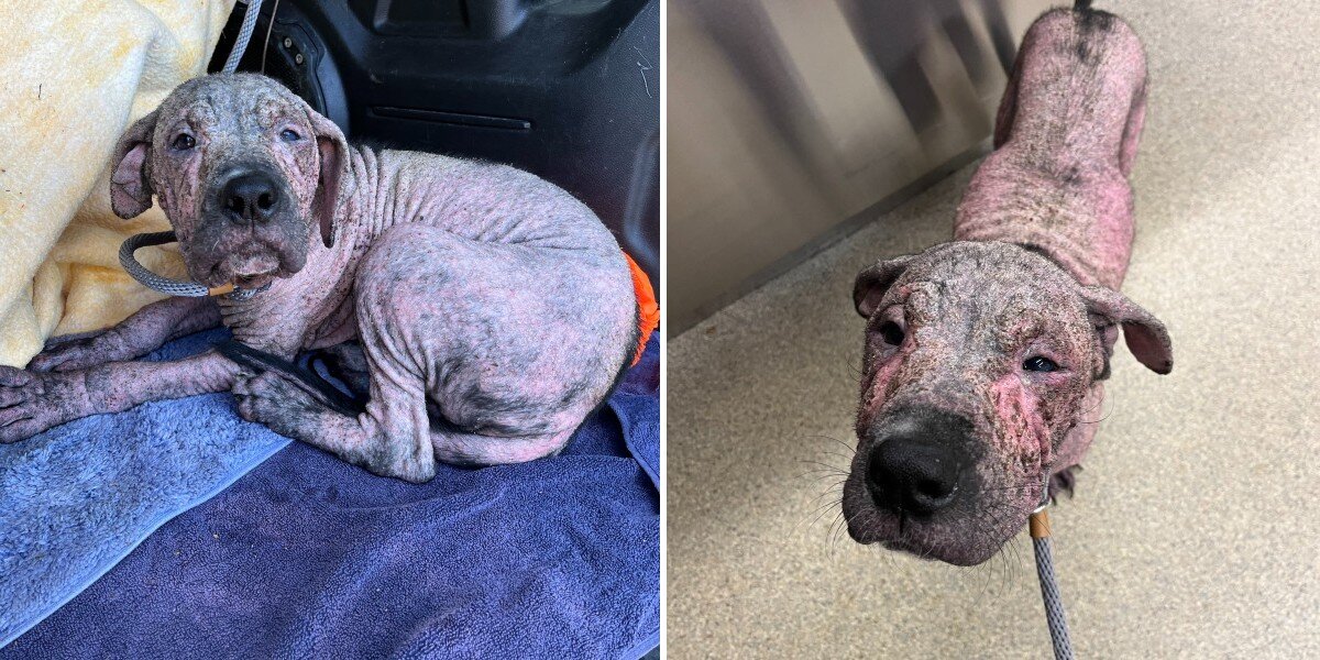 On the outside, the puppy was completely bald, and his pink, wrinkly skin was inflamed. But inside, he was one of the sweetest boys SRSL had ever known, and they were determined to give him the life he deserved.